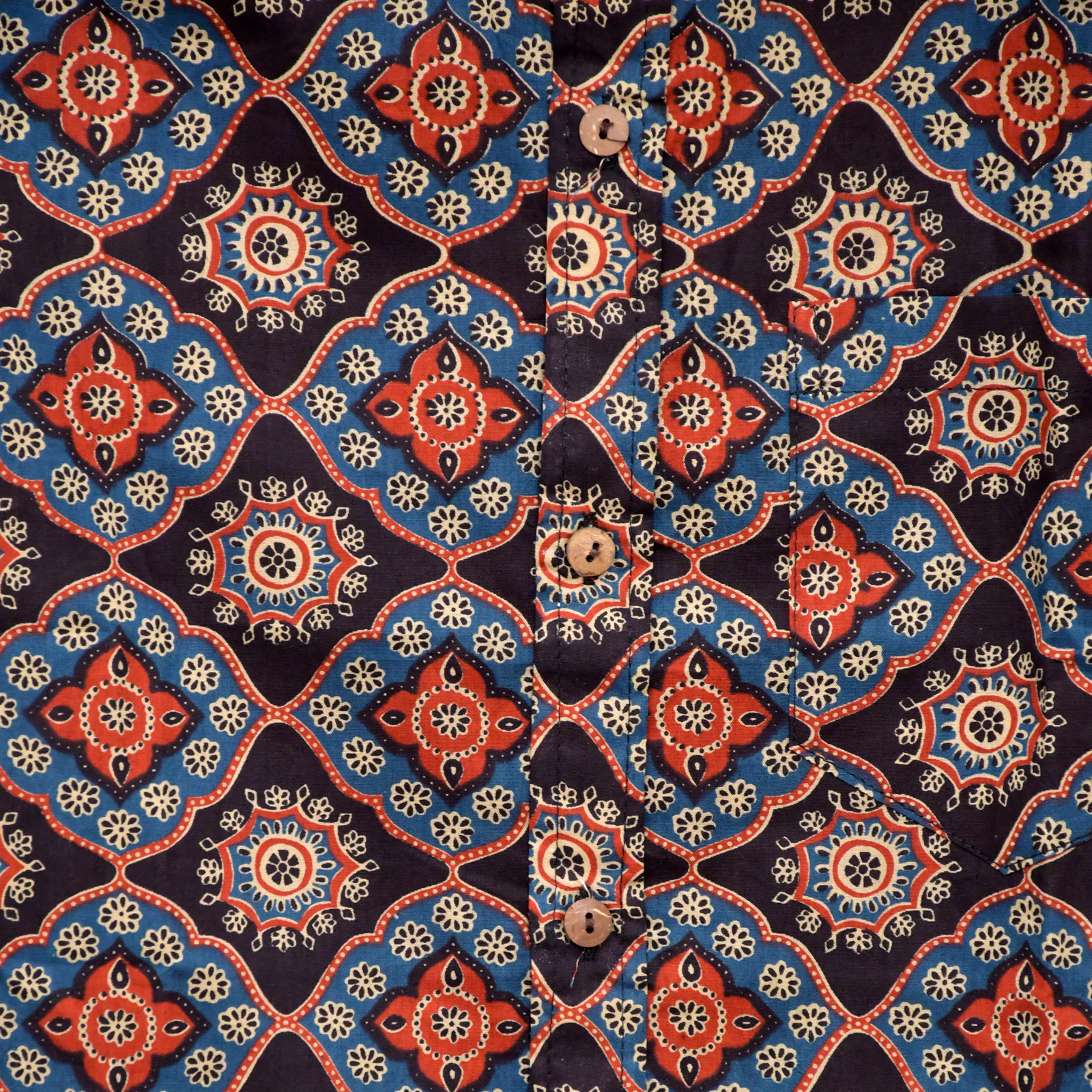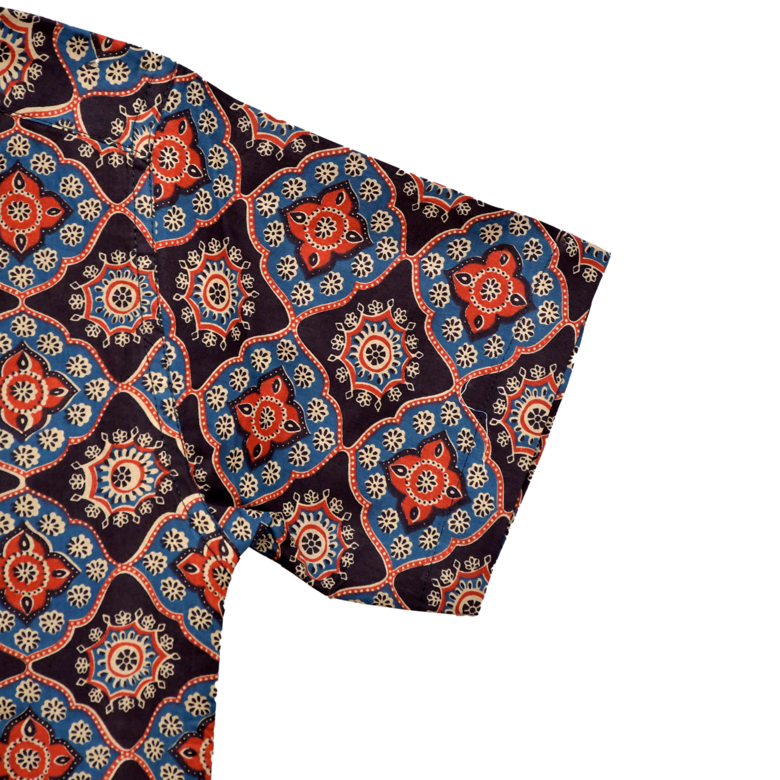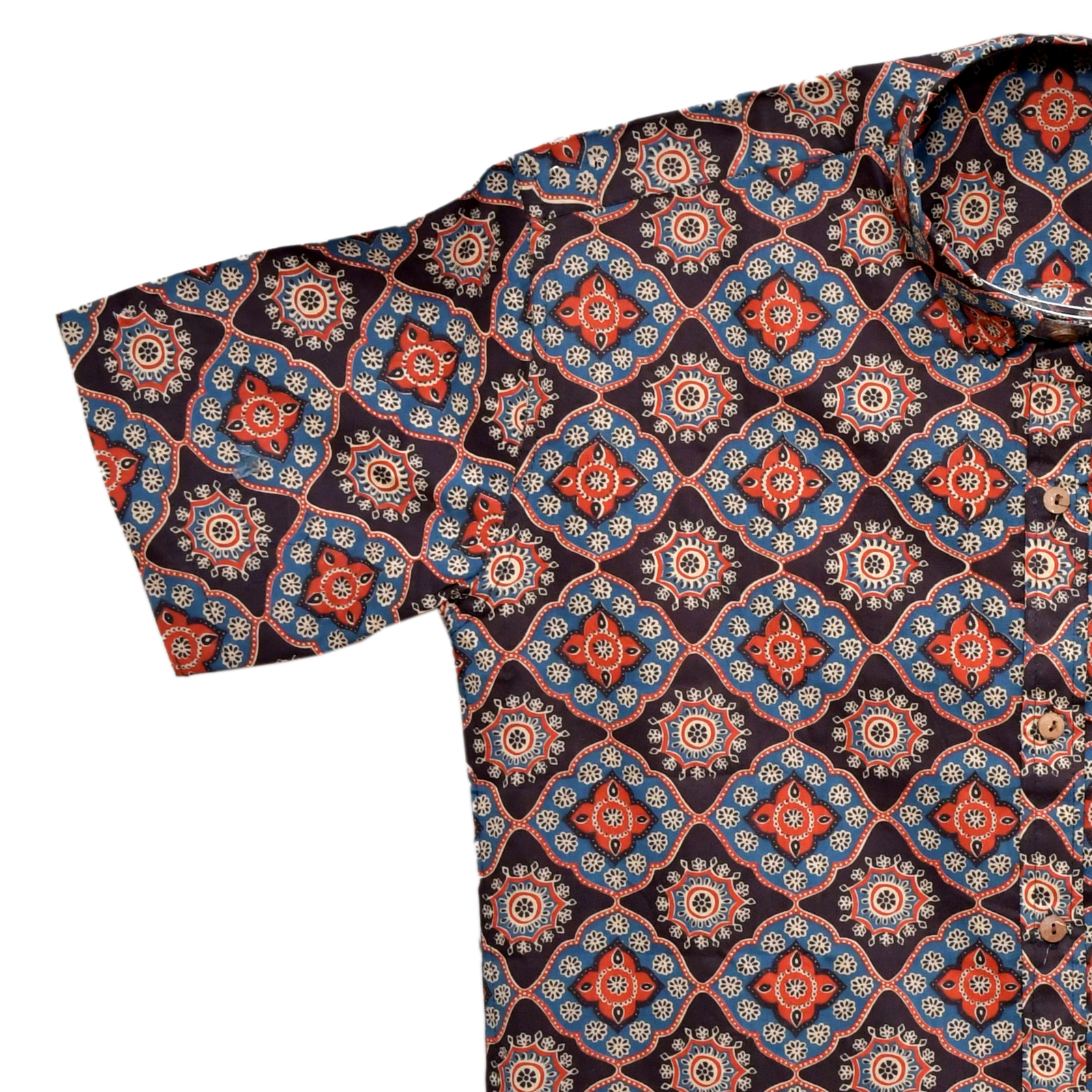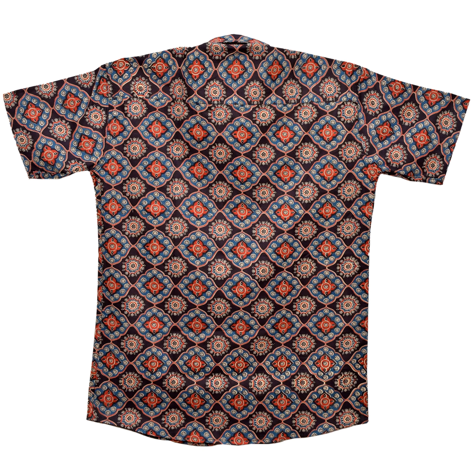 Mosaic Mandala Dark Blue Geometric Floral Block Print Cotton Shirt