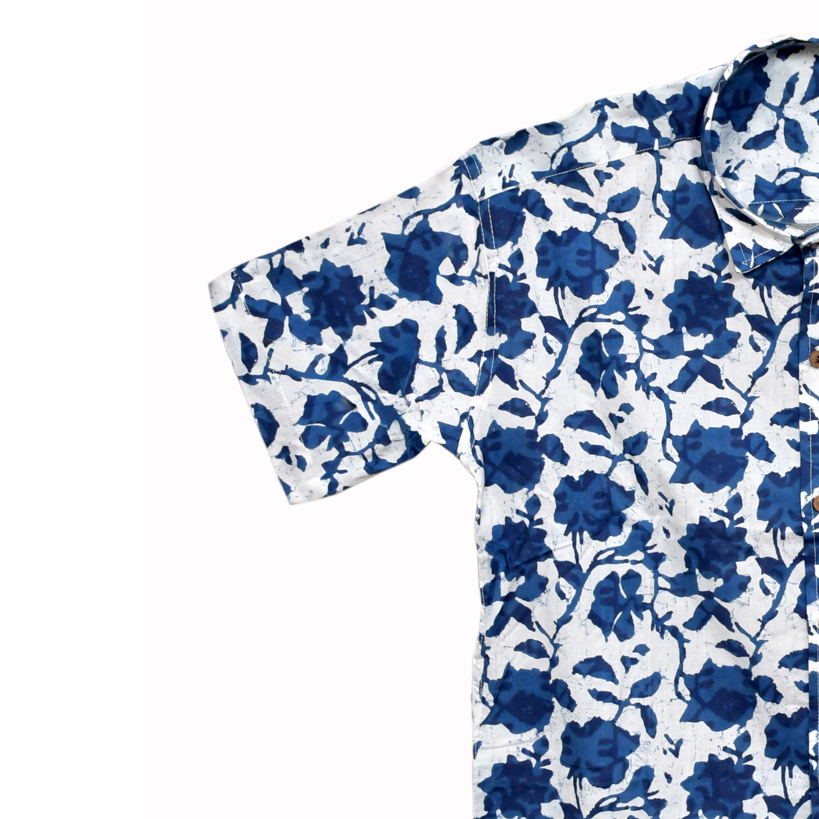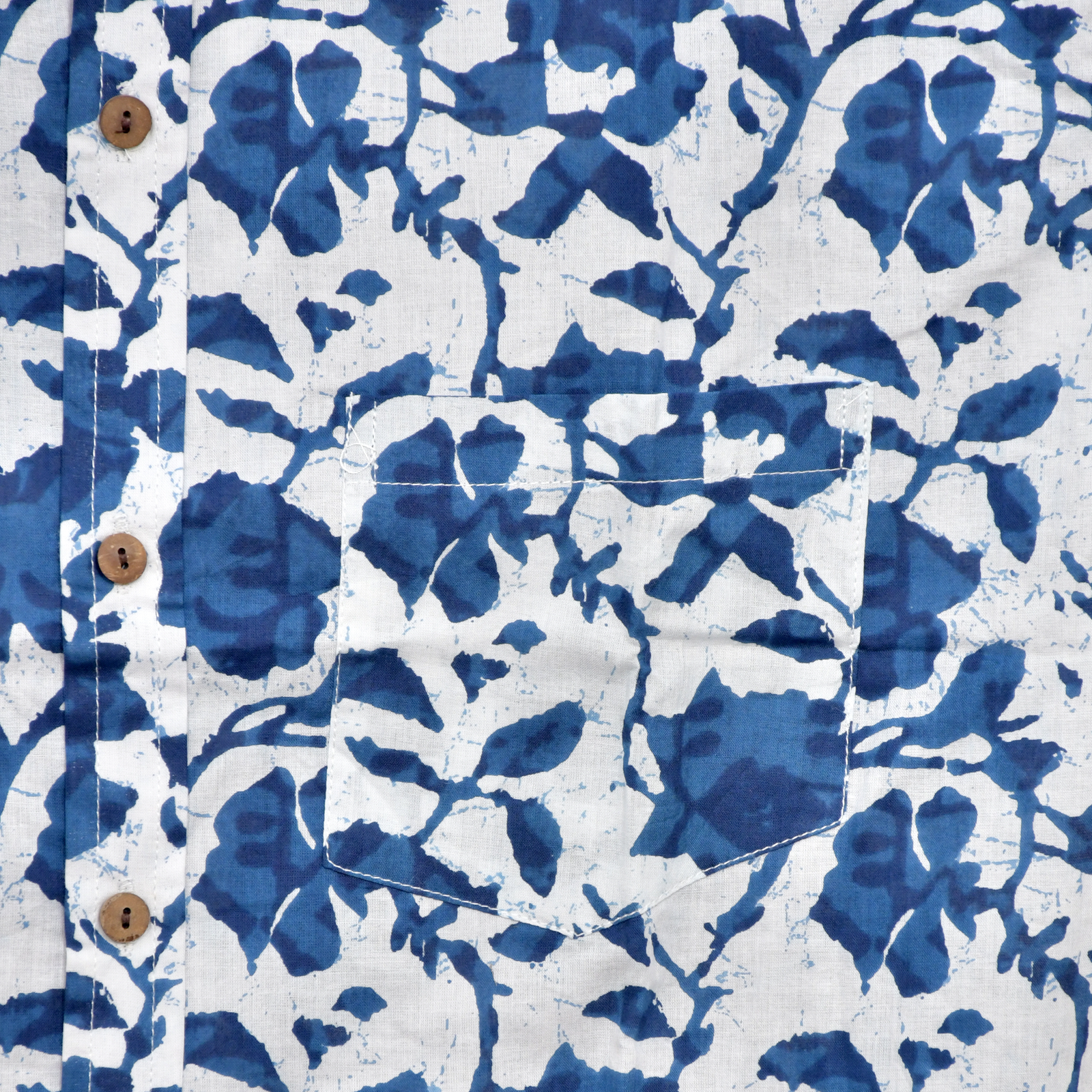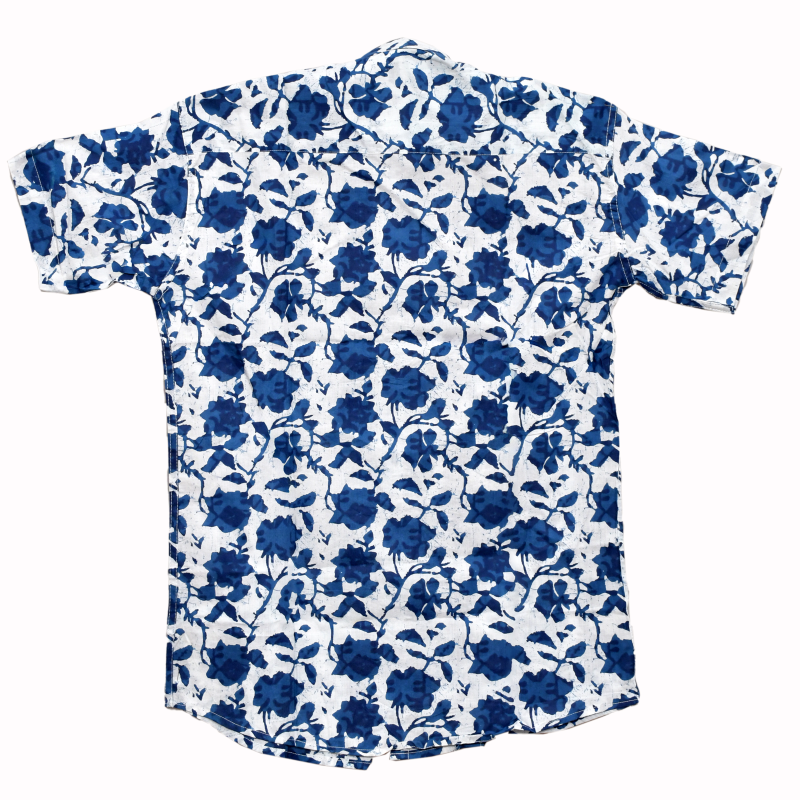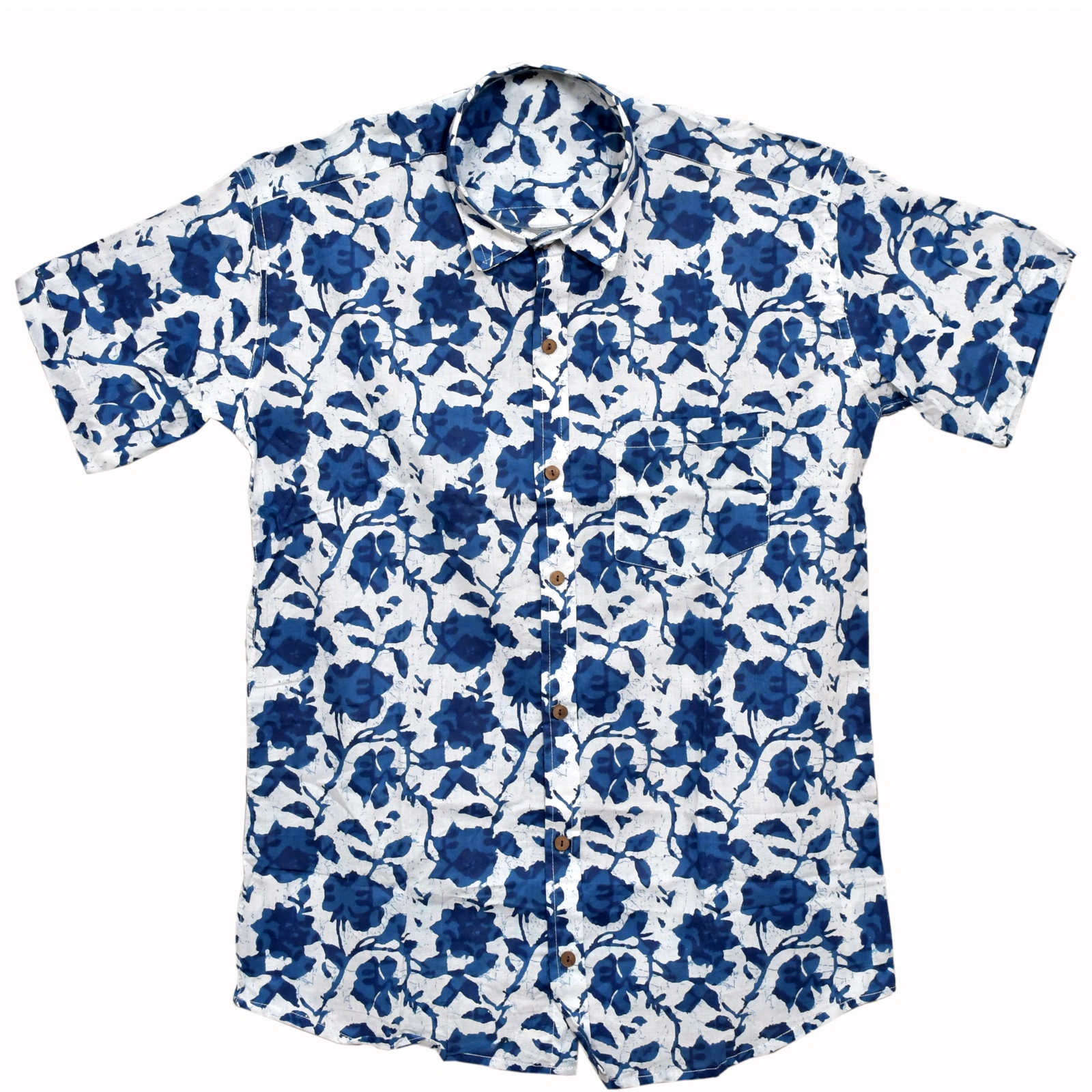 Embrace the serene beauty of hand-crafted textiles with the “Neel Kamal” Shirt. This piece features a captivating indigo floral hand block print against a soft white cotton backdrop.  Its unique design and comfortable fit make it a perfect addition to your casual wardrobe, adding a touch of artisanal charm to any look.