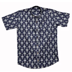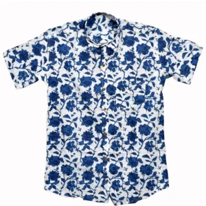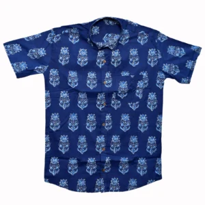 Embrace timeless style with our Indigo Bloom Hand-Block Printed Shirt. This shirt showcases the beauty of traditional Indian craftsmanship with its intricate, hand-block printed floral design in a rich indigo hue.