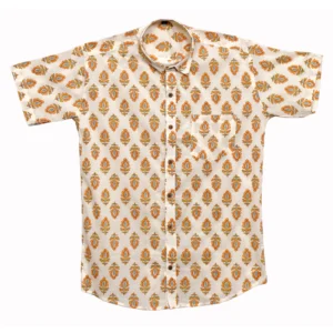 Marigold Motif Off-White Floral Block Print Cotton Shirt