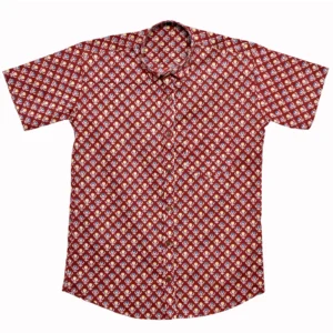 Mosaic Bloom Maroon Geometric Print Cotton Shirt